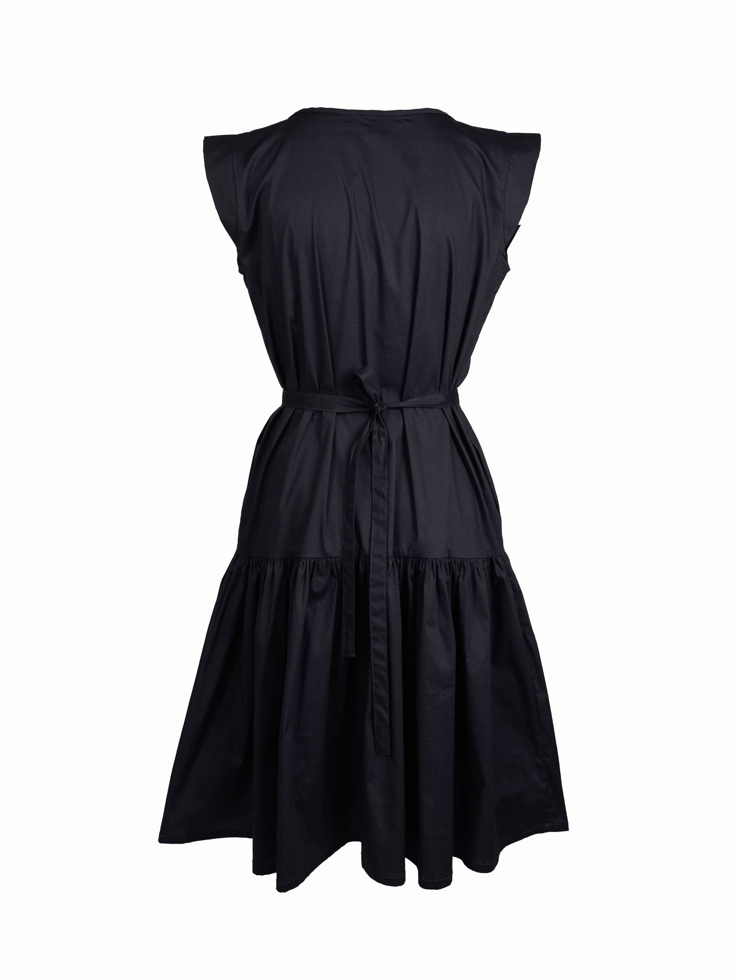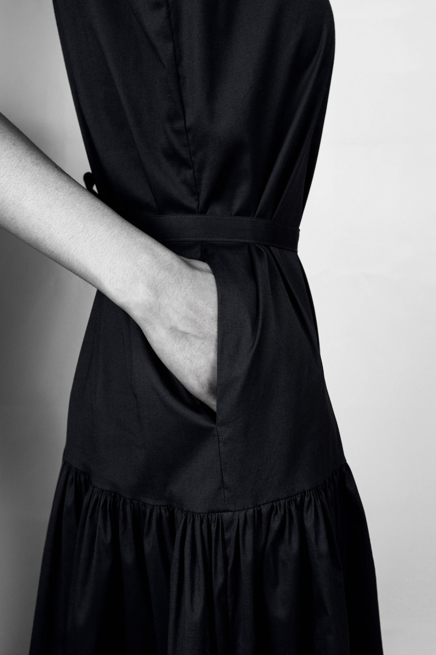 Ushering in a new season and celebrating summer in a Guillotine favourite. The Black Cotton Sateen Frill Dress has a beautifully cut minimalist silhouette, luxurious sheen and can be styled up or down. Our easy cotton dress is perfect for every body shape and can be worn with/out the belt.