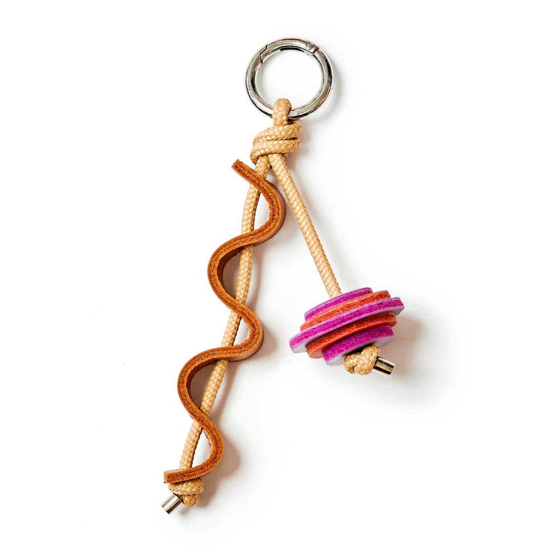 Rope is attached to a gold / silver carabiner ring which can be easily attached to a bag strap, keys etc. Use as is or combine it with our other bag charms to create a fuller, more colourful look.