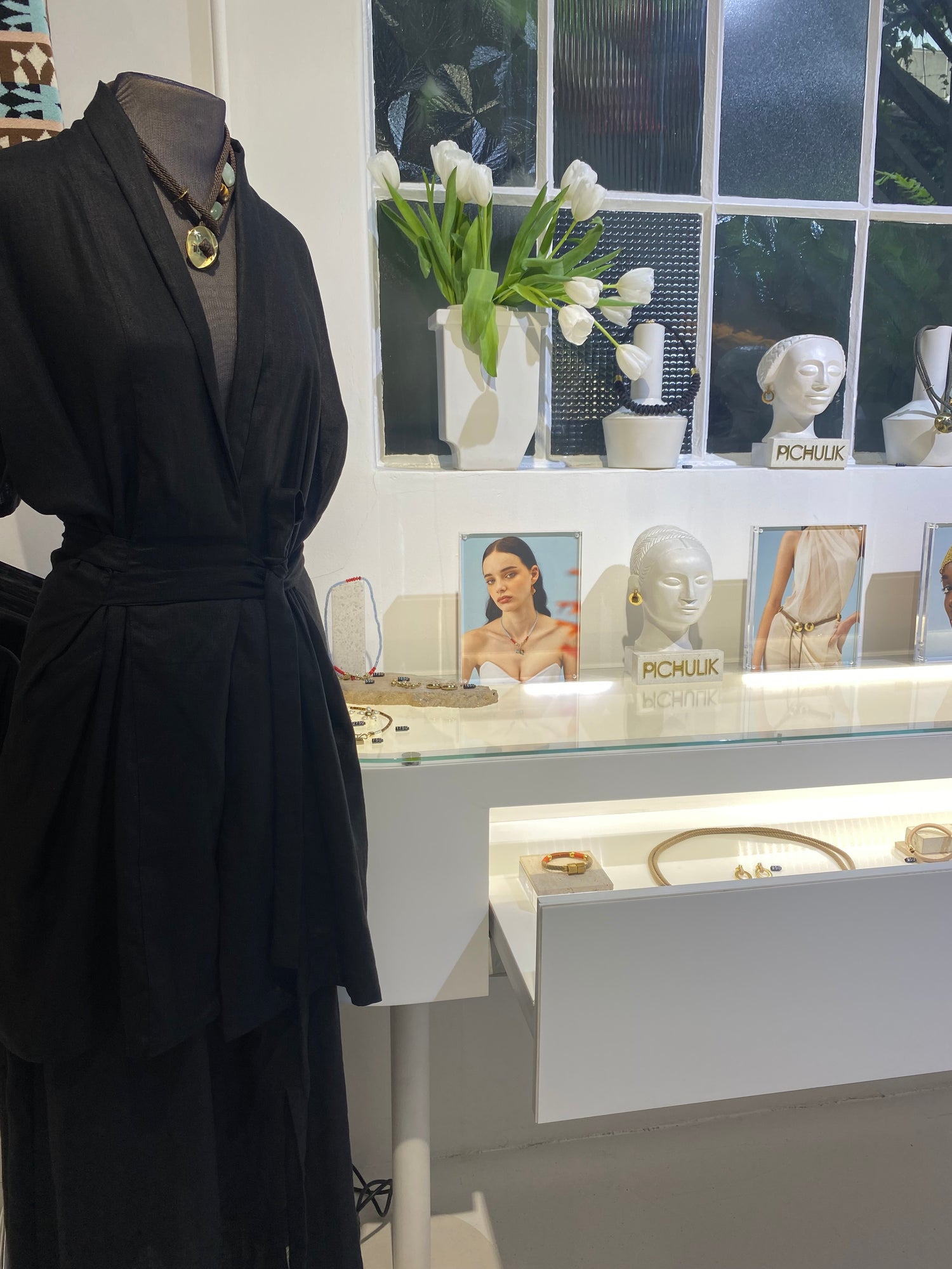 This statement piece works beautifully as an evening piece with Pichulik accessories and reverses to an easy day piece. Match up with Guillotine Maxi gathered Linen Skirt for an outstanding ensemble.